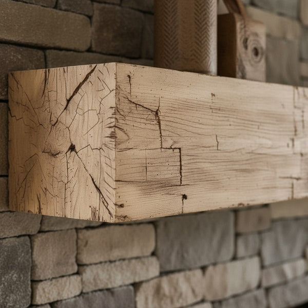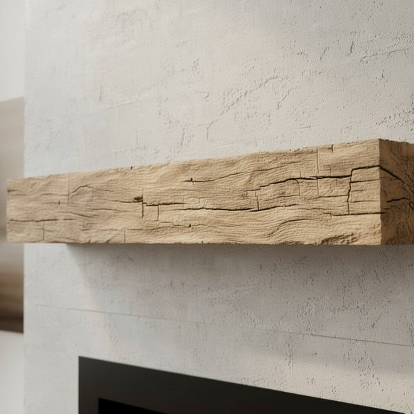 New River Weathered Beam Non-Combustible Mantel Shelf WHEAT Finish