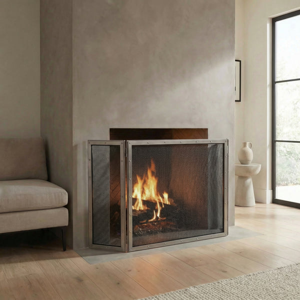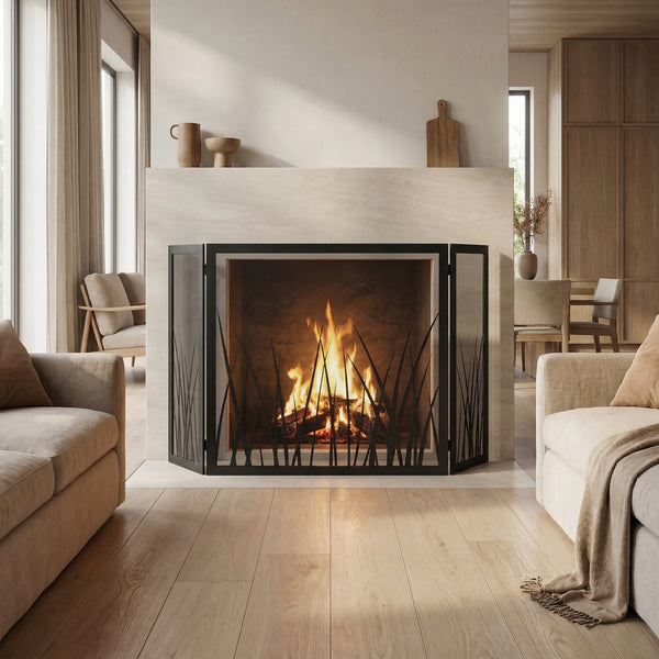 Tri-fold fireplace screens that fold flat for storage and stand free in front of your hearth.