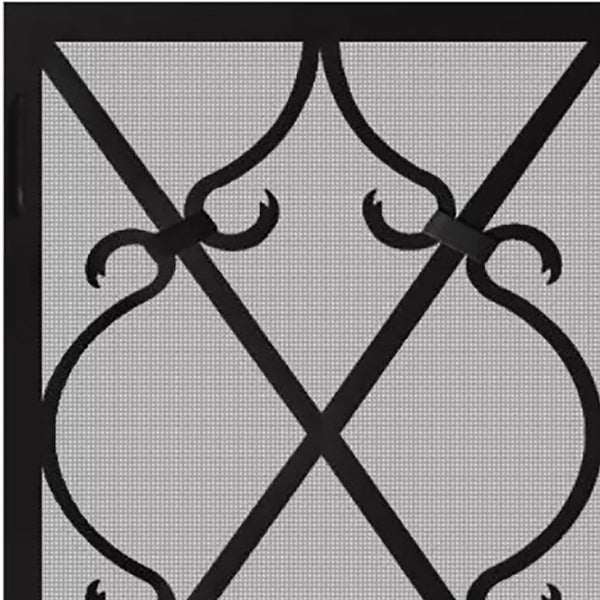 Wrought iron fireplace screens with old-world detail and rustic character.